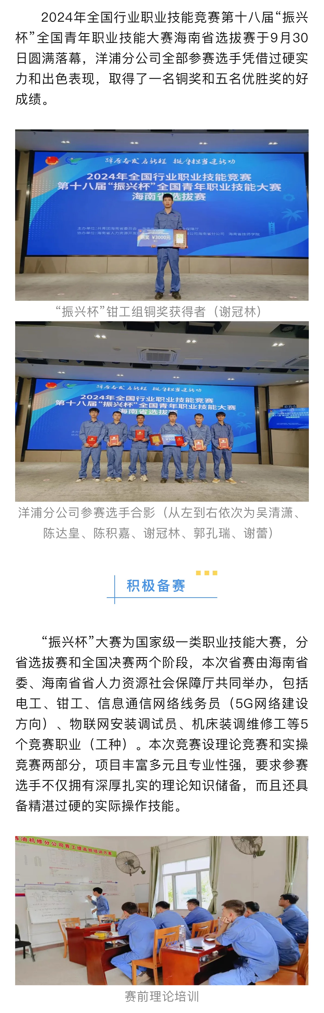 洋浦分公司在第十八屆“振興杯”全國(guó)青年職業(yè)技能大賽海南省選拔賽中榮獲佳績(jī)