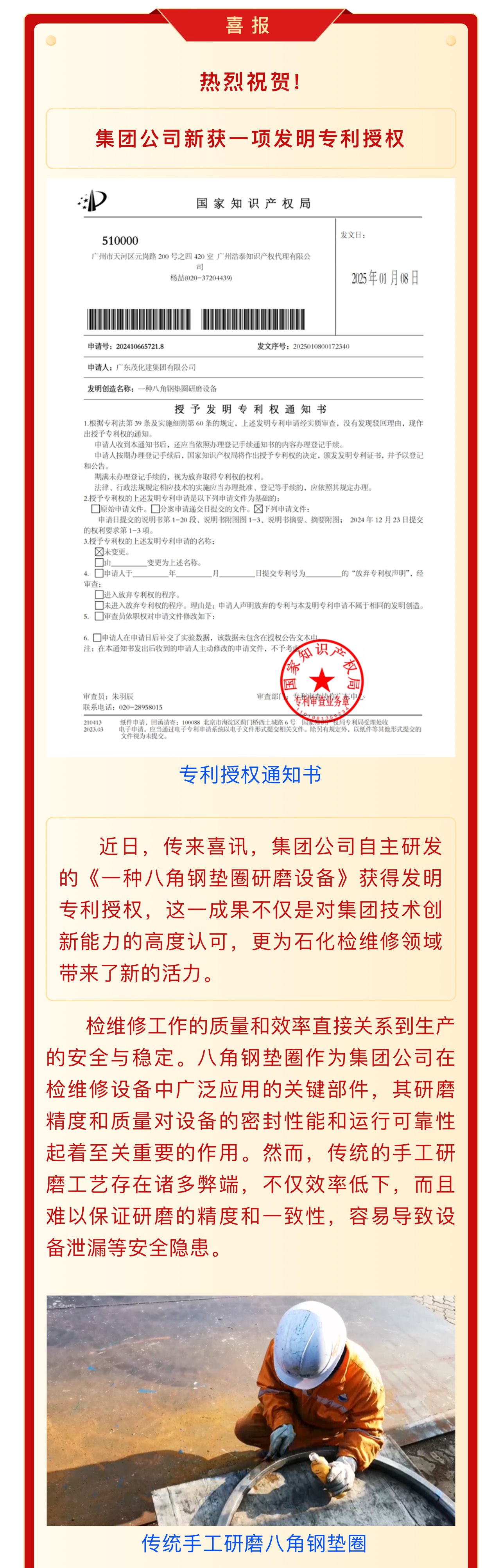 喜報(bào):集團(tuán)公司新獲一項(xiàng)發(fā)明專(zhuān)利授權(quán)