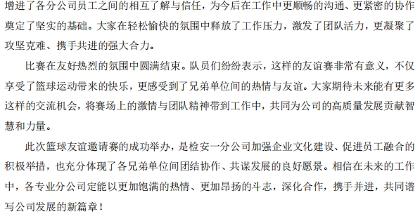 檢安一分公司成功舉辦籃球友誼邀請(qǐng)賽