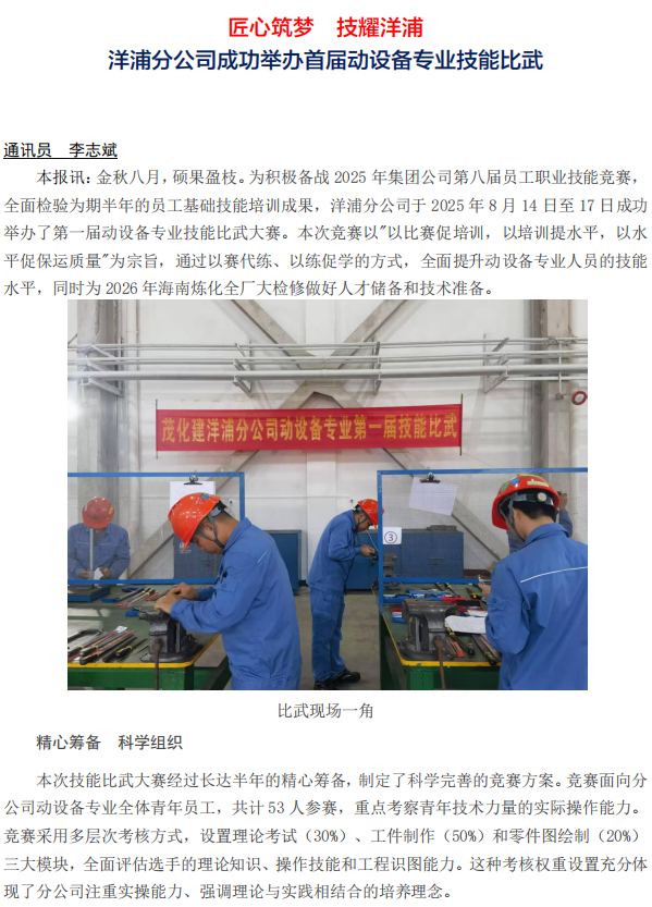 洋浦分公司成功舉辦首屆動設(shè)備專業(yè)技能比武