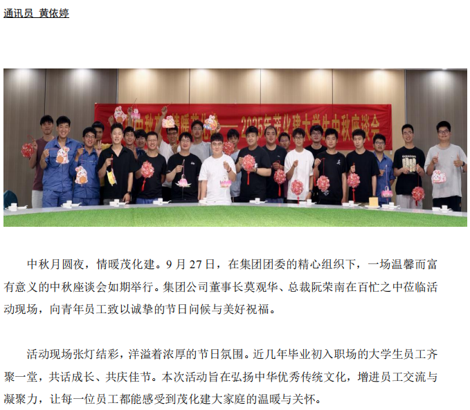 月圓中秋夜 情暖茂化建——2025 年集團大學(xué)生中秋座談會圓滿舉行